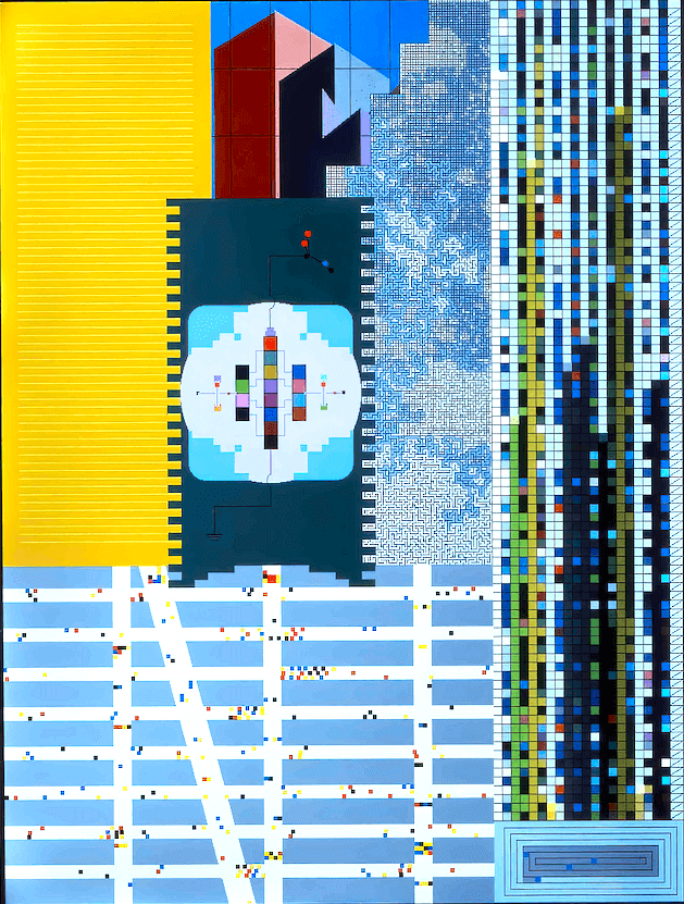 In order to ground my general observations about data mapping in art in concrete material, I would like now to briefly discuss a few projects by some of the best artists dealing with data visualization. One of my favorites is John Simon (New York). His work is unique for a number of reasons. First of all, he makes explicit connections in his pieces between the new ideas of new media and various traditions, movements and figures of modern art, in particular Mondrian, Klee, and Sol Levitt. Given that art world and culture at large are still largely treating new media as a phenomena in itself which has no connections to the past, Simon’s explicit and systematic explorations of conceptual linkages between new media and modern art is very important. In addition, while new media art field has been rapidly growing in size over the last years, and while artists in all disciplines are now routinely computer as a tool in their work, there are still literally only a few artists out there who focus on one of the most fundamental and radical concepts associated with digital computers – that of computation itself (rather than interactivity, network, or multimedia). Simon systematically researches how real-time computation can be used to create engaging artworks which are both conceptual and strongly material, offering the viewer rich visual experiences. In his earlier work online piece Every Icon (1998) and his wall-mounted pieces included in Bitstreams exhibition at the Whitney Museum (2001) Whitney uses real-time computation to create artworks that have a starting point in time but no end point; as the time progresses, they constantly change. While we can find certain precedents for such artworks in modern art (for instance, kinetic art, early computer art of the 1960s, and conceptual art), Simon pursues a unique strategy of his own: he uses artificial life, cellular automata and other computational techniques to create complex and nuanced images which combine figurative and abstract and which explicitly insert themselves within the history of modernist visual research.